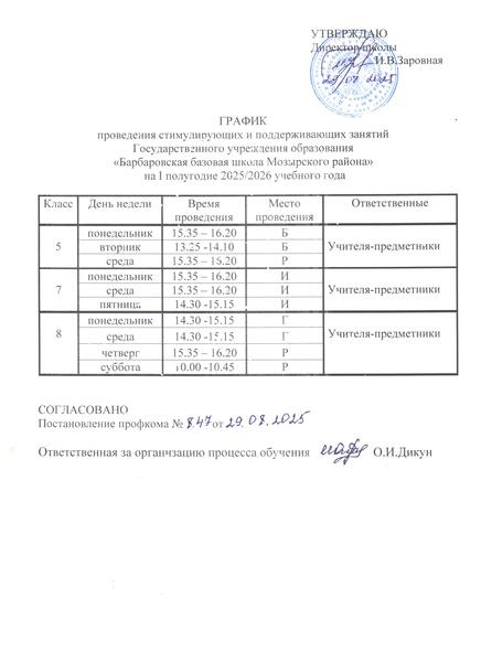 График проведения стимулирующих и поддерживающих занятий